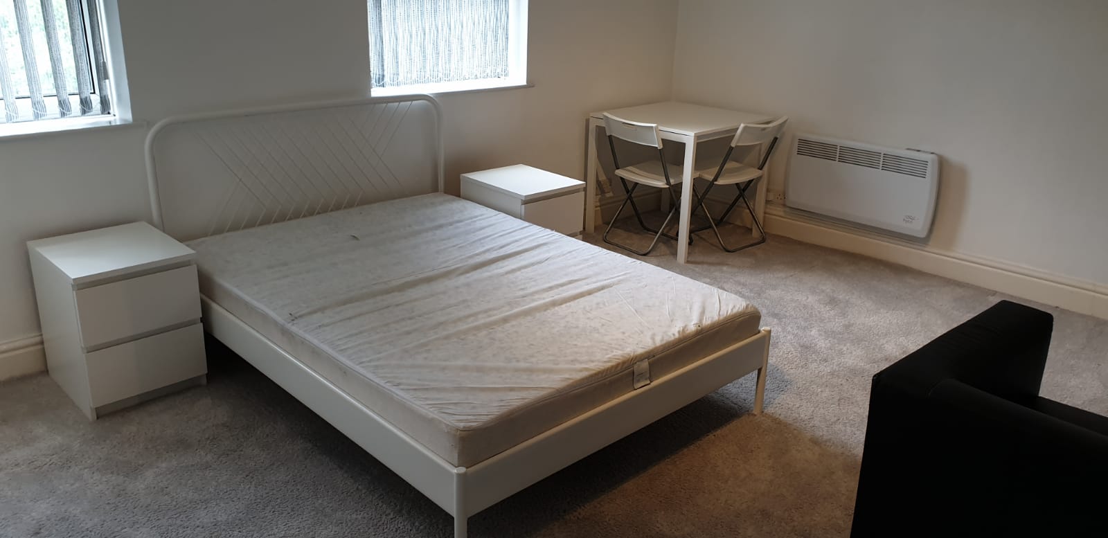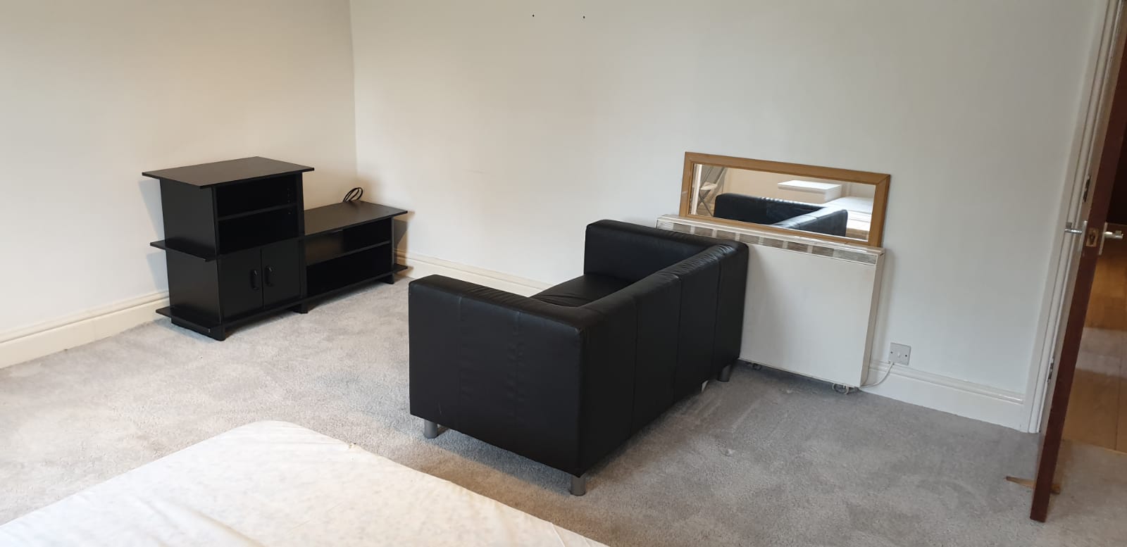 - Very Large furnished living room / bedroom including double bed, and sofa.